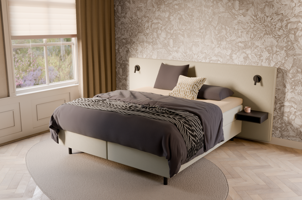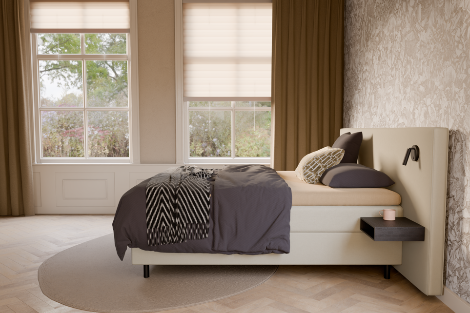 Het is mogelijk om de boxspring vlak, elektrisch verstelbaar of elektrisch verstelbaar met lineaire motoren te nemen. Bij de lineaire motoren heeft de boxspring extra functies zoals anti-snore of zero-gravity.